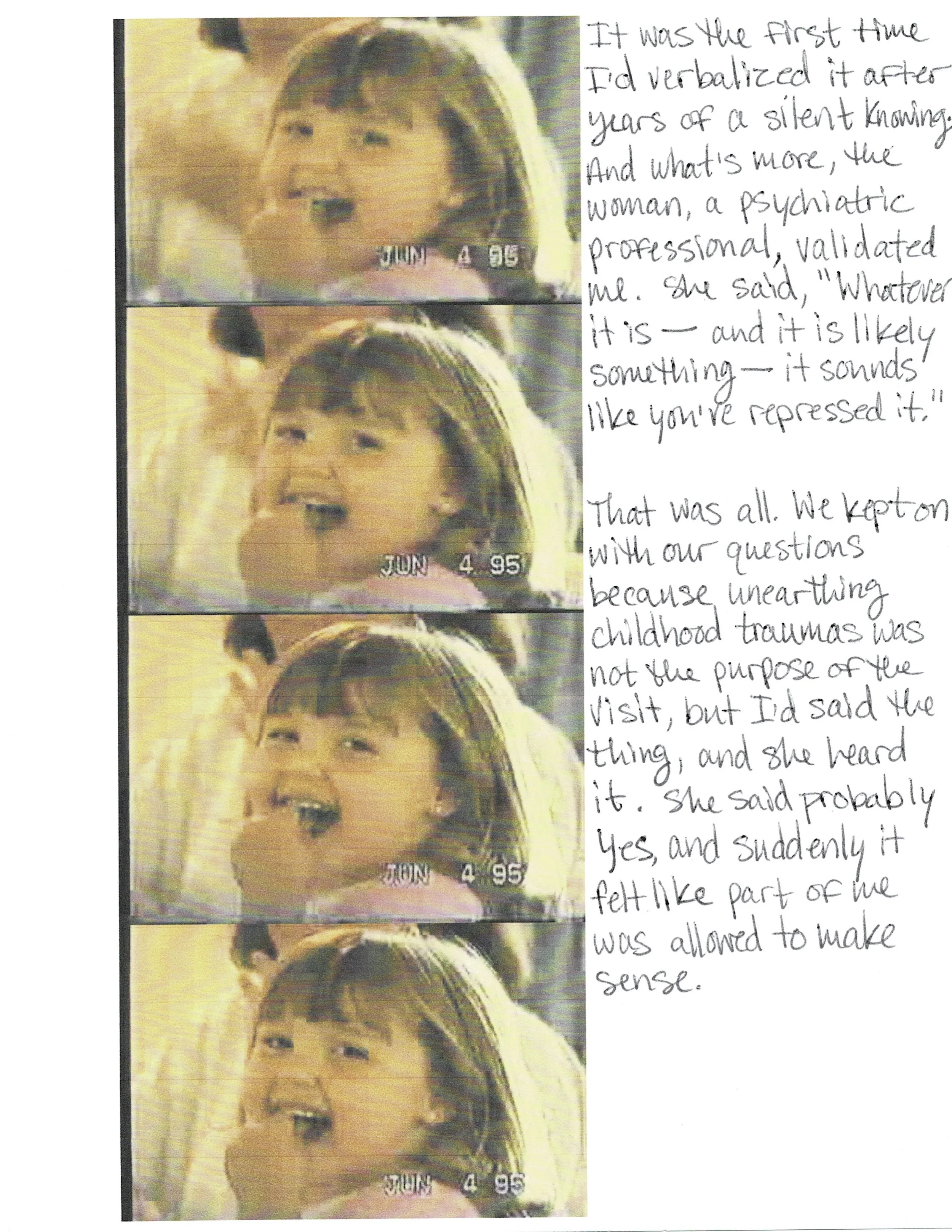 Content warning: This piece deals with repressed childhood trauma. Nothing graphic or explicit, but it details the process of revealing the unnamed trauma.